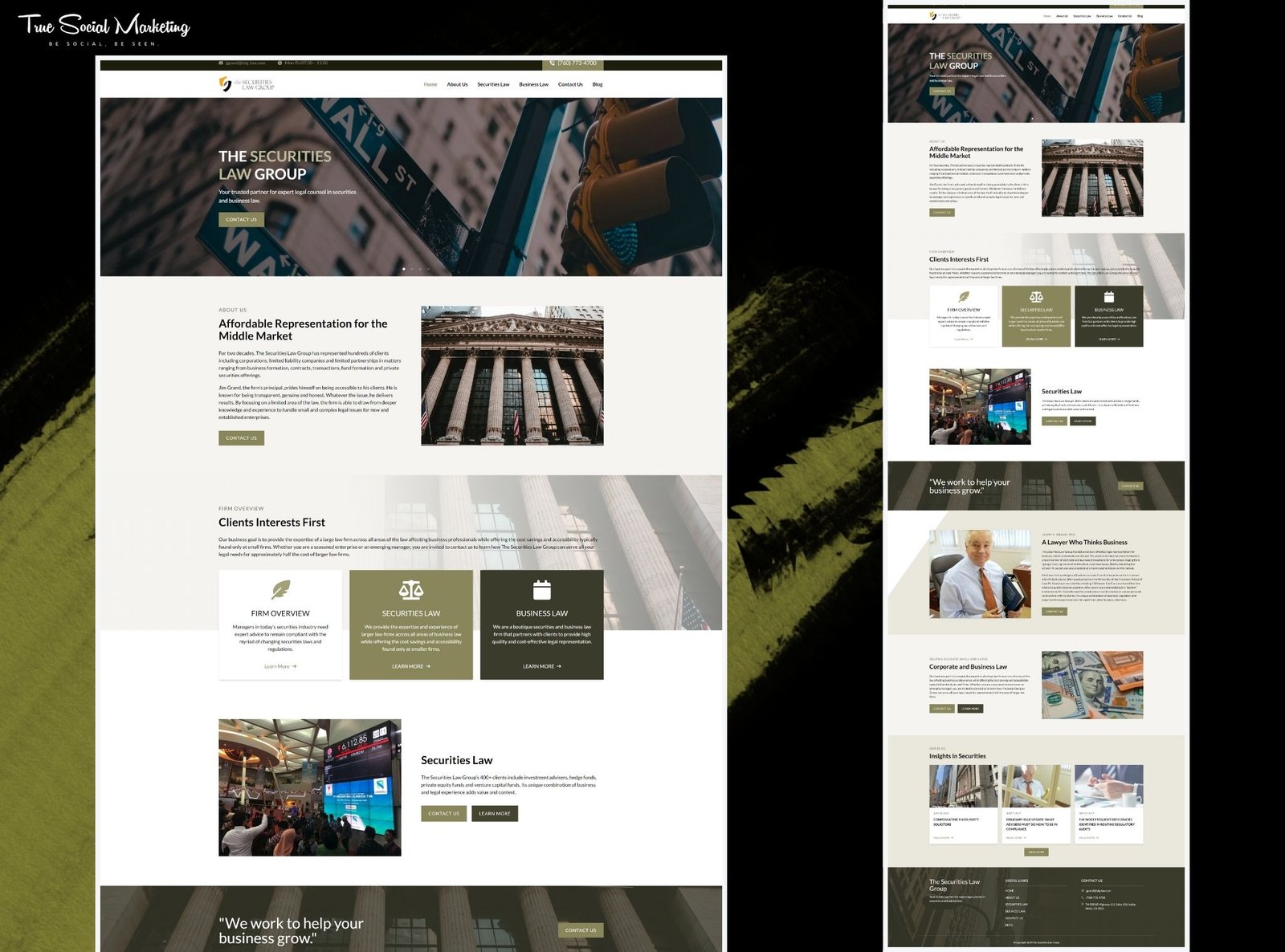 Law firm company with professional, clean design and basic contact functionality. Three tone design with shades of olive, brown and white.